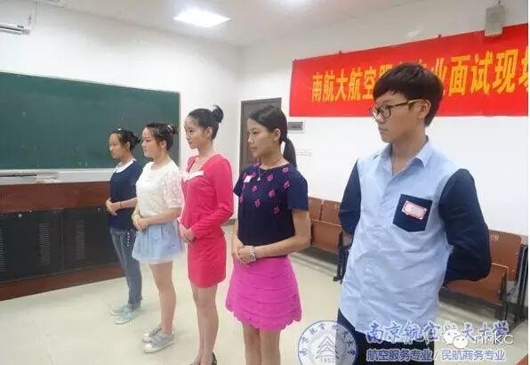 虽然南京7月初的天气阵雨连绵,南京航空航天大学空乘招生面试依然火热进行中。。。。担任本次面试官的老师分别为:(由左至右)南京航空航天大学教务秘书倪琳燕老师、办公室余江波主任、日本航空公司陈雯菁老师、退役乘务长现任航服专业班主任刘雪竹老师、和退役空乘现任航服专业班主任张力老师,进行英语口试的老师为退役乘务长准航服专业班主任丁慧老师。这些曾经的空乘人员不仅拥有多年的航服经验并且对航服人才的要求充分了解,对学生面试各个环节严格把控,他们按照标准严谨细致地评判每一位学生,态度亲和笑容友善并不时给学生提出专业意见。下午,考生们还将进行英语口试和笔试环节的考核,相信每一位报考航空服务专业的学生都将收获的不仅是一份学历,更多的是一份“内外兼修的专业技能+艺术修养培养”,这种由内而外的培养,才将会使他们受益终身。南京航空航天大学继续教育学院2014空乘【航空服务专业】还将于7月12日(下周六)举行面试体检,请广大学生及时进行报名并与负责老师预约面试体检。由于近期报名和面试学生较多,如期望来校参观或预约体检面试